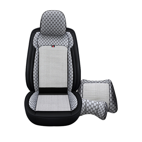 Fundas de asiento de coche negras y grises Reposacabezas de piel sintética de 5 asientos y cojín de protección de soporte lumbar MH32 Funda de asiento universal