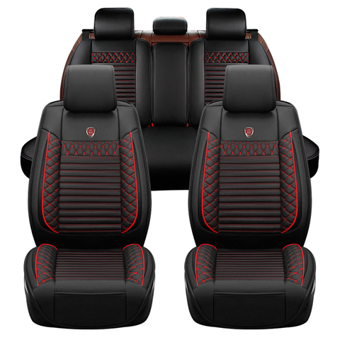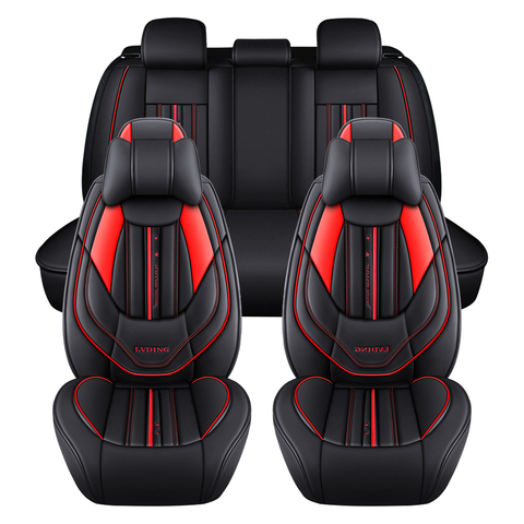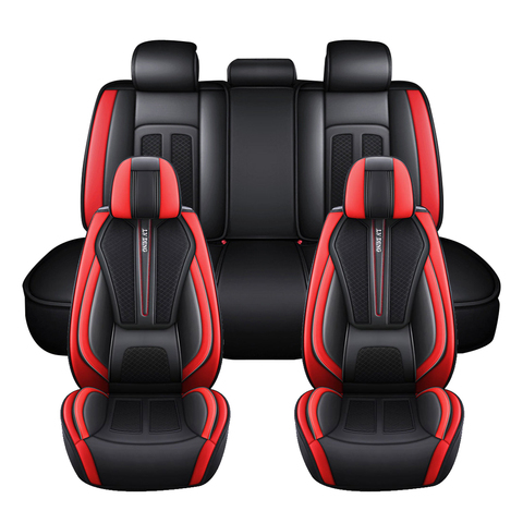 Fundas de asiento de coche negras y rojas Cojín de protección de cuero de imitación de 5 asientos Funda de asiento universal MH97