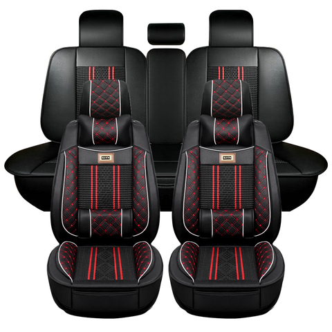 Fundas para asientos de coche Reposacabezas de piel sintética de 5 asientos + Cojín de protección de soporte lumbar MH55 Funda de asiento universal