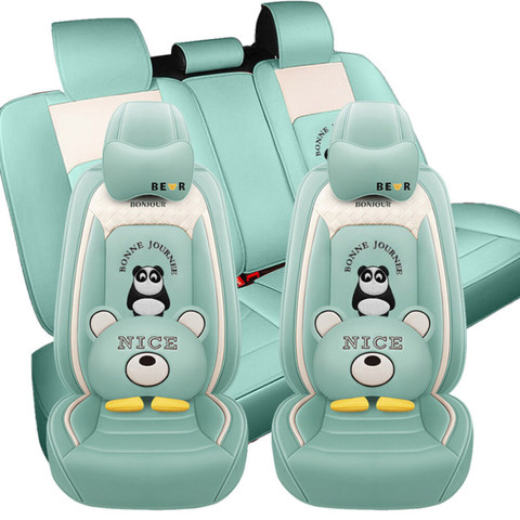 Fundas de asiento de coche de dibujos animados verdes Reposacabezas de piel sintética de 5 asientos + Cojín de protección de soporte lumbar MH192 Funda de asiento universal